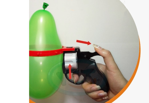 Fill the balloons and put them on the gun. Pull the trigger to start the game.