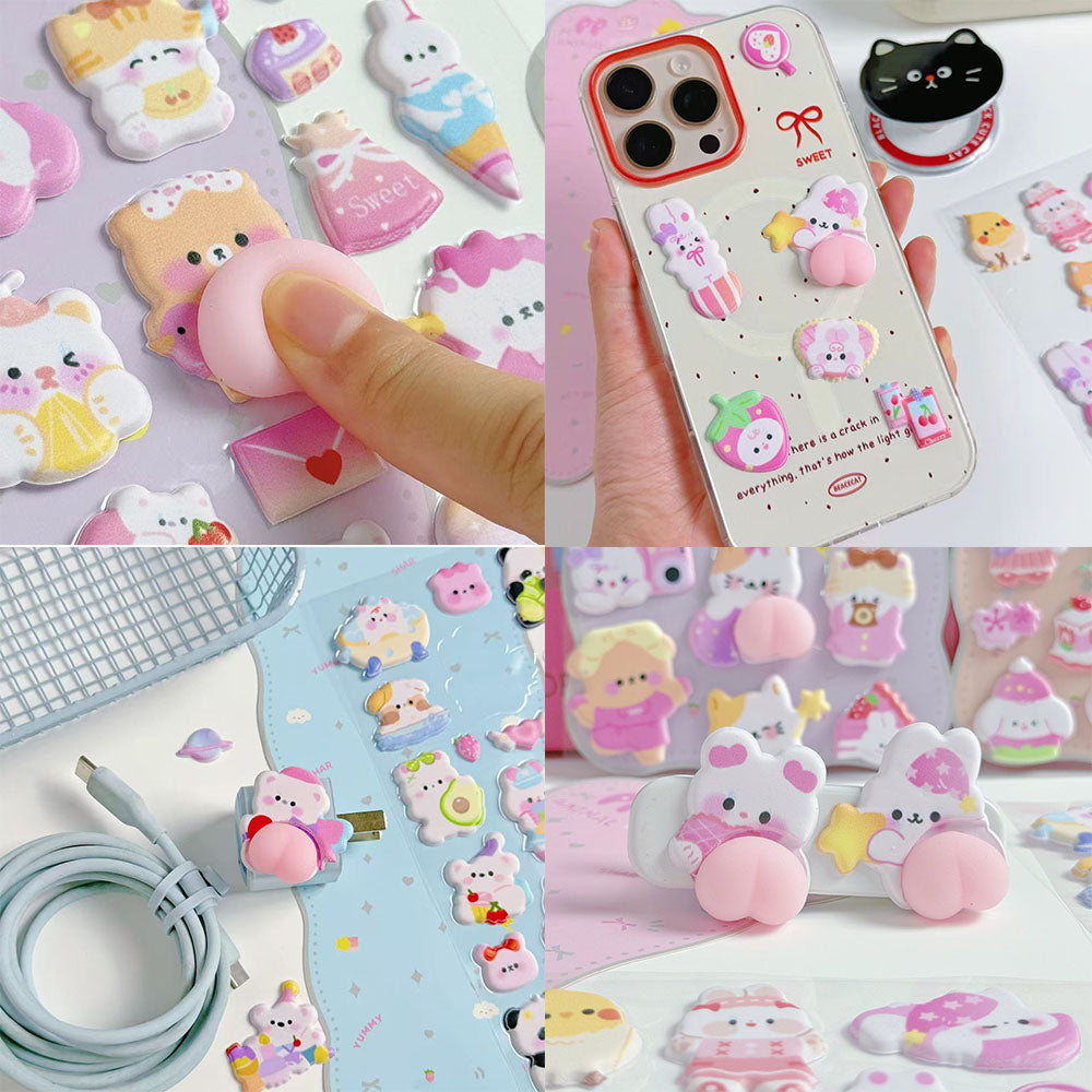 Super Cute 3D Puffy Butt Stickers – Satisfying to Press, 4-Sheet Set