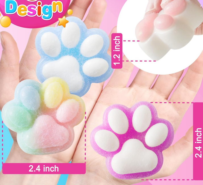 Cat paw squishy toys are not only great for kids but also for adults who need stress relief. Squeezing these soft and squishy toys can help relieve anxiety and increase focus, making them perfect for work or study breaks.