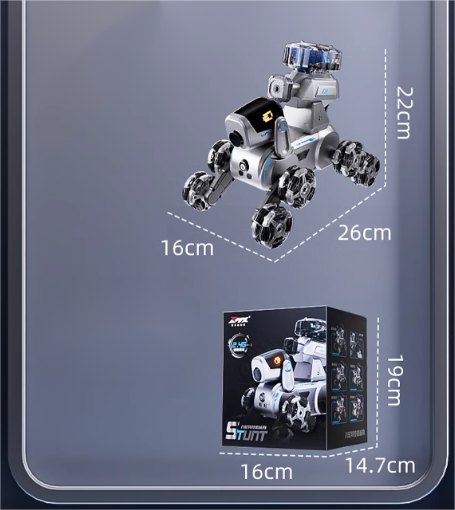 - Robot Doy with Gel Blaster: 16 x 14.7 x 19 CM