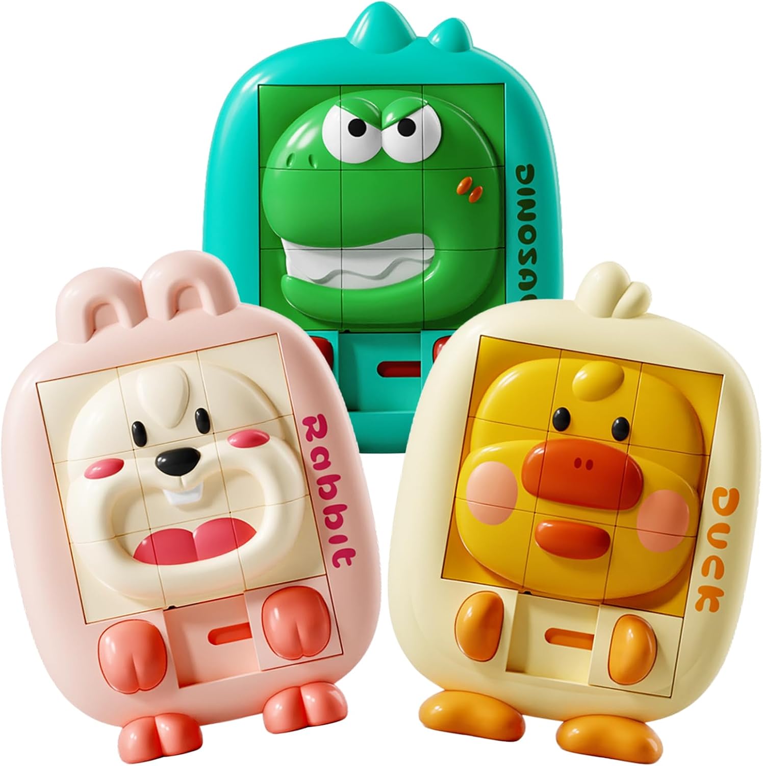 Featuring adorable duck, rabbit, and dinosaur characters, this sliding puzzle toy instantly attracts kids and makes learning through play more fun.