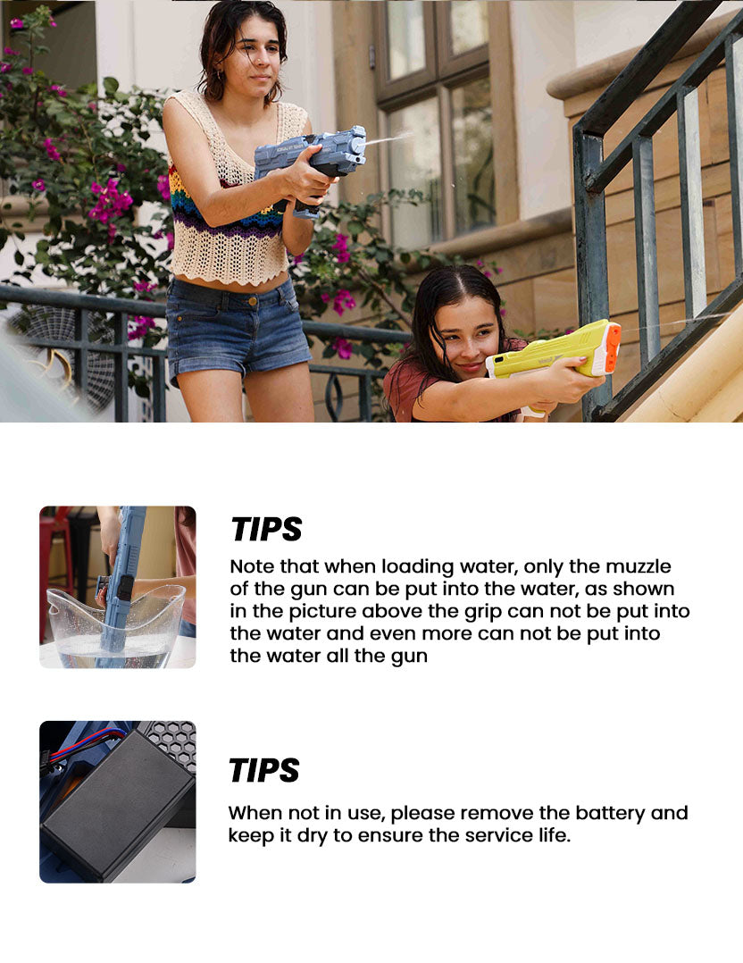 - Super Power series: Pump action shoots water up to 16 meters, soaking opponents from a safe distance!